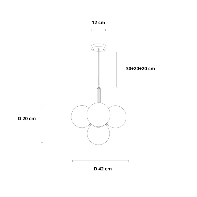 Die Pendelleuchte kombiniert hochwertige Glaskugeln mit einem klaren, modernen Design. Die einzelnen Glaskörper streuen das Licht weich und schaffen eine wohnliche Atmosphäre, die sich ideal für gemütliche Abende oder funktionale Lichtnutzung eignet. Durch die Größe und Anzahl der Bollen lässt sich die Leuchte optimal an die Raumgröße und gewünschte Lichtwirkung anpassen