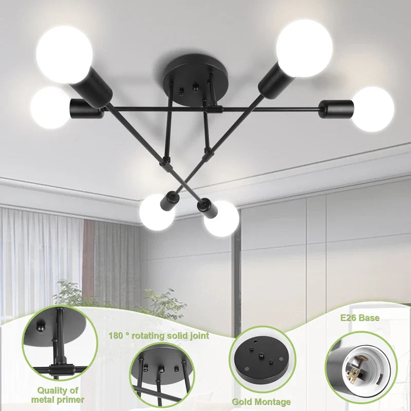Diese Industrial-Deckenleuchte mit Kreuz-Design kombiniert robustes Metall mit funktionaler Lichtwirkung und verleiht Ihren Wohnräumen einen modernen, charaktervollen Look. Sie eignet sich ideal zur Grundbeleuchtung von Wohnzimmer, Esszimmer, Schlafzimmer, Büro oder Arbeitszimmern, insbesondere in größeren Räumen.