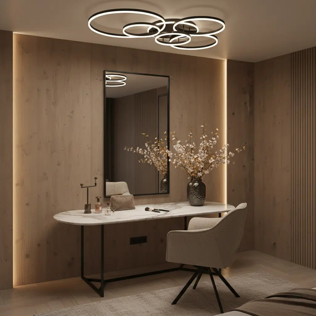 Moderne Deckenleuchte mit dimmbaren LED‑Ringen für große Räume