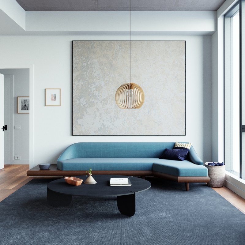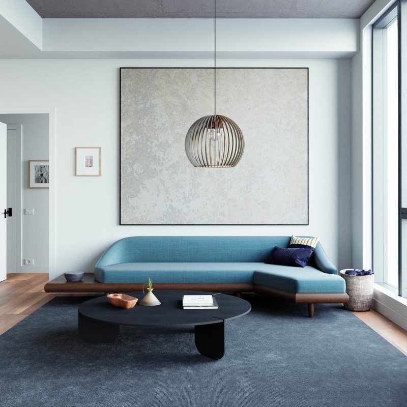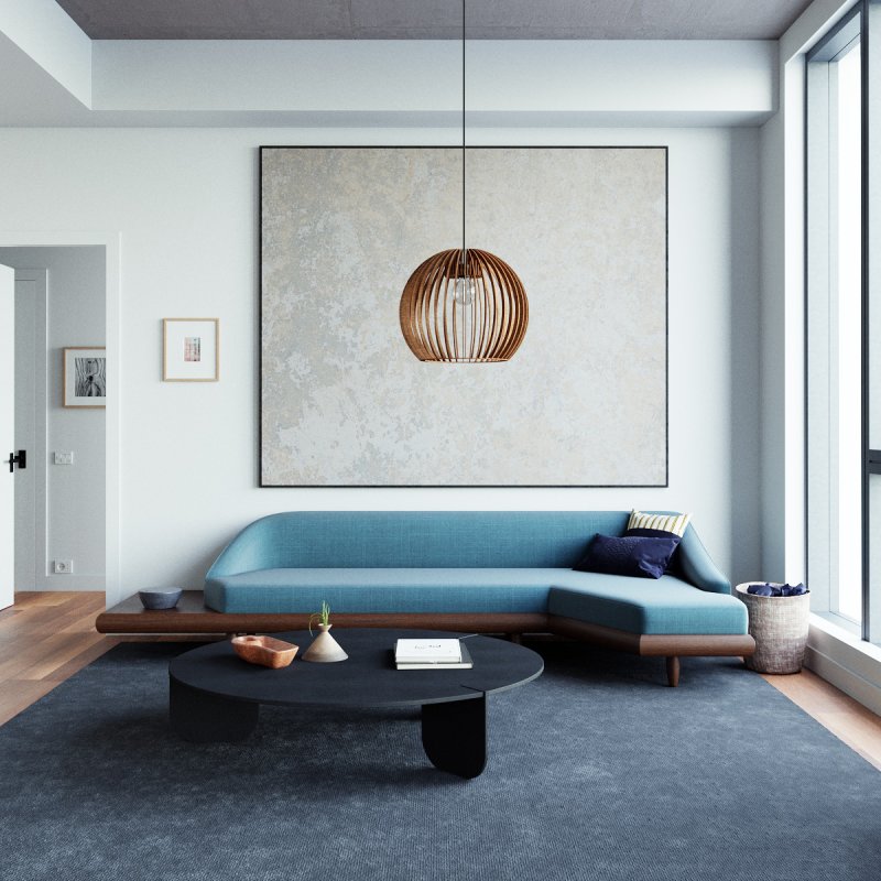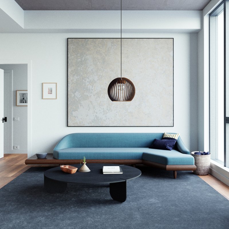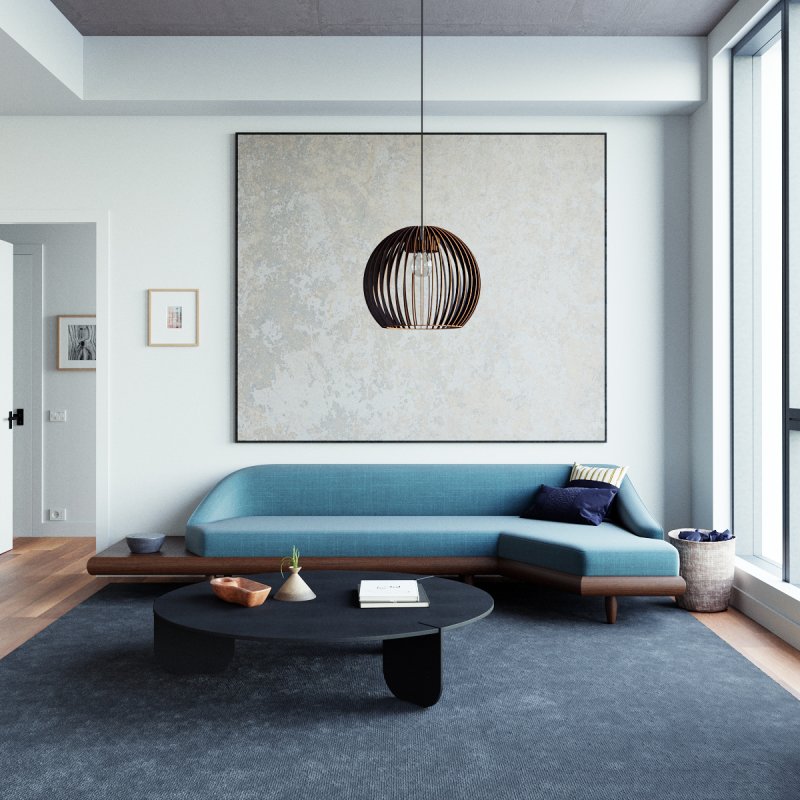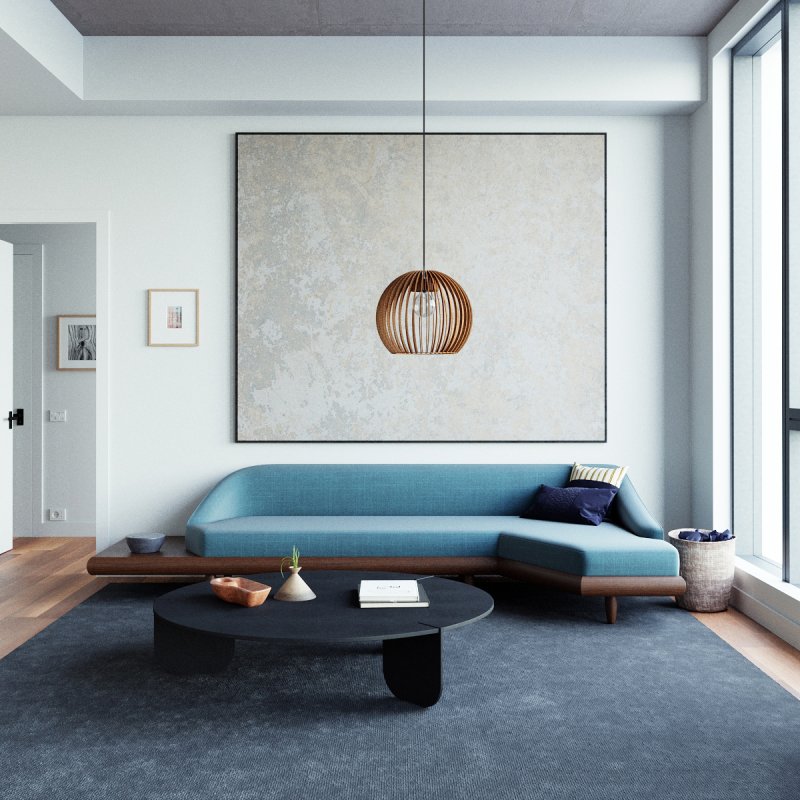 Die Pendelleuchte kombiniert ästhetische Materialwirkung mit funktionalem Licht: Der Holzschirm gewährleistet eine weiche Lichtstreuung, die Räume optisch aufwertet und gleichzeitig für komfortable, blendfreie Grundbeleuchtung sorgt – perfekt für gemütliche Wohnsituationen.