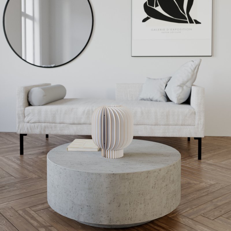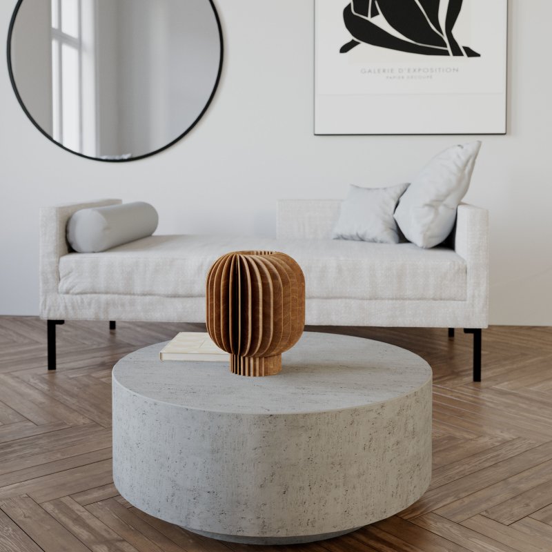 Die runde, lamellenförmige Tischleuchte bringt natürliche Ruhe und moderne Formensprache zusammen: Durch die Holzlamellen tritt das Licht sanft und gleichmäßig aus der Leuchte, wodurch eine stimmungsvolle Grundbeleuchtung entsteht, die nicht blendet, sondern den Raum in ein warmes Licht taucht – perfekt für entspannte Abende, Lesen oder stimmungsvolle Akzente.